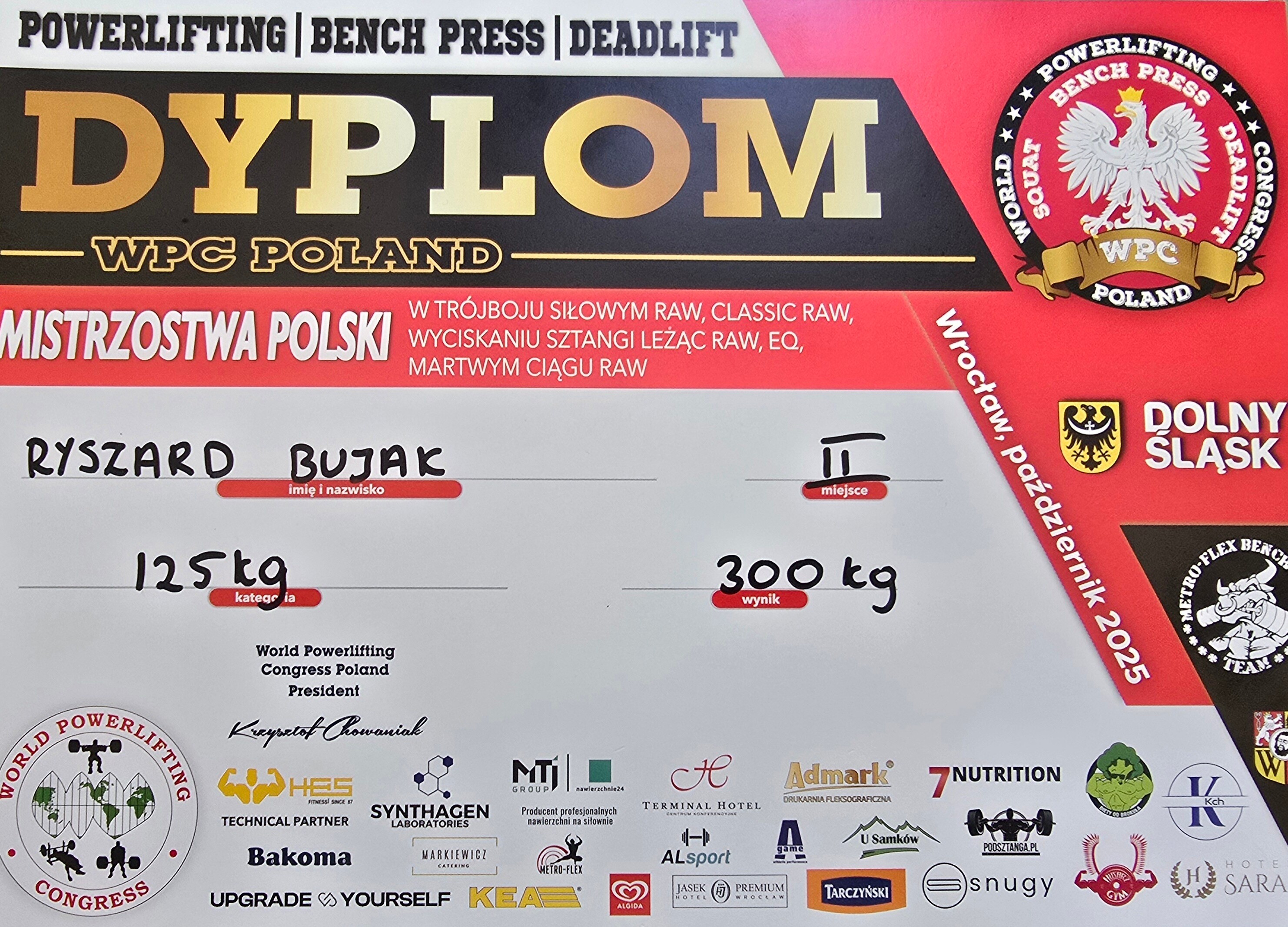 Siłownia towarzyszy mi od 21 lat, ale prawdziwą pasję odkryłem 10 lat temu, kiedy trójbój siłowy stał się moim sposobem na życie. To nie tylko sport, ale filozofia, która uczy pokonywania własnych ograniczeń – zarówno tych fizycznych, jak i mentalnych. Przez lata miałem wzloty i upadki, ale nigdy się nie poddałem. Wytrwałość, konsekwencja i dążenie do celu to cechy, które ukształtowały mnie nie tylko jako zawodnika, ale przede wszystkim jako człowieka.